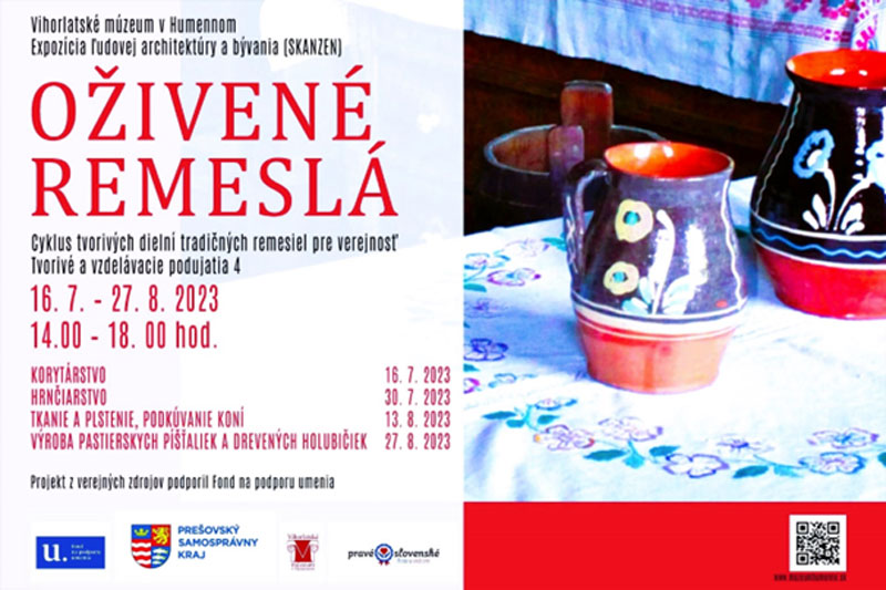 Вігорлатьскый музей в Гуменнім у сполупраці з лекторами ремеселных традіцій реґіону вышнёго Земпліна позывають почас лїта 2023-го року до ареалу Експозіції народной архітектуры і бываня (сканзену) Вігорлатьского музею в Гуменнім.