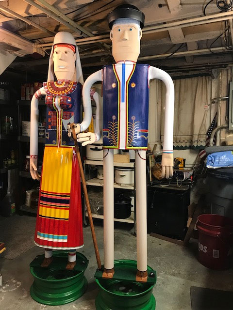 Перед даякым часом Майкель Барон, якого коріня выходит з Лемковины, рішыл зробити при схоснуваню ріжного рода желізных елементів дві статуі – Лемкыні і Лемка. Такых, як си іх быти може запамятал з молодых років, як си іх уявил в днешніх часах. Дуже ґу тому не треба было. Старчыло пару рурок, блях, части автомобільного колеса і глушник.