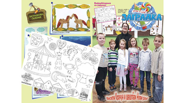 НОВИ САД – Весели Крачун и щешлїви Нови рок жича вам школяре руского оддзелєня першей класи зоз свою учительку у ОШ „Братство єдинство” у Коцуре, хтори мали чесц буц на рамику децемберского числа часописа за дзеци „Заградка”. У тим чишлє и дарунок „Вифарбйованка” зоз кнїжки „Карусел, за хтору илустрациї” виробела Аня Гудак шицким малим и вельким читачом.
