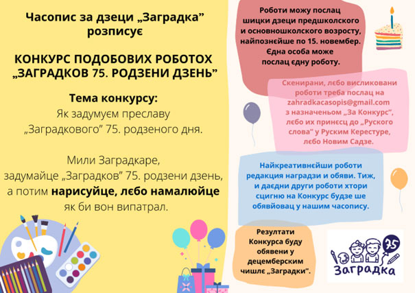 НОВИ САД – Вишла октоберска „Заградка”, у хторей розписани и Конкурс подобових роботох „Заградков 75. родзени дзень”.
