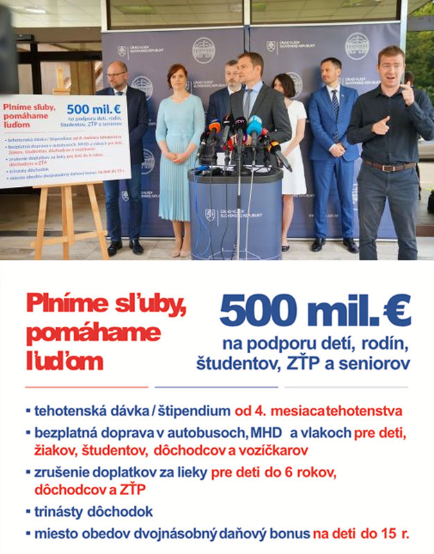 17. 7. 2020: Влада представила комплекс соціалной помочі за 500 міліонів евр