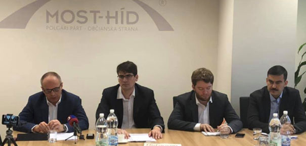 То лем дакотры із кроків і намірів, на котрых хоче в далшім періодї робити партія Most-Híd. Підпредесове Абел Равас (третїй злїва), Петро Крайняк (другый злїва) і Аттіла Аґоч (першый справа) вєдно із номінантом своёй партії у функції уповномоченого влады Словацькой републікы про народностны меншыны Ласлом Буковскым (першый злїва) свої планы презентовали в понедїлёк, 16-го децембра 2019-го року, на стрїчі з медіями. Інформовала о тім аґентура TASR.