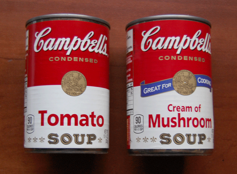 • Дві конзервы з Кембеловыма поливками, на котры вытварну пропозіцію зробив Енді Ваєргол і котру вєдно з далшыма образовыма пропозіціями на тоты поливкы в тых днях вкрали.