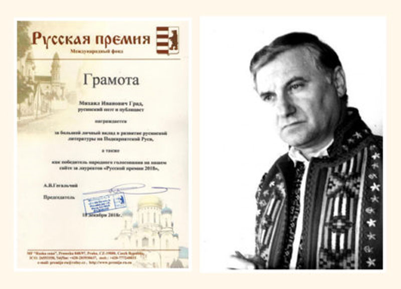 Іншак тому не было ани того року і 18-го децембра 2018-го року быв выголошеный тогорічный лавреат, котрым став русиньскый писатель, поет Михайло Град. „Русская премия“ му была удїлена за великый влкад до розвитку русиньской літературы. Єдночасно Град став і вітязом інтернетового голосованя.