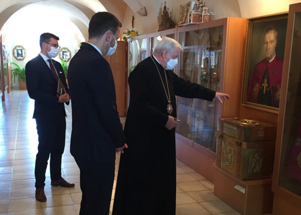 „З увагов выслухав собі лекцію о історії ґрекокатоликів на Словакії і оддав почливость особностям той церькви – блаженому єпіскопови мученикови Павлови Петрови Ґойдічови, оцїненому тітулом Яд Вашем – Справедливый меджі народами, і блаженому єпіскопови мученикови Василёви Гопкови,“ інформовав Михал Павлишіновіч, говорця Пряшівской архієпархії.