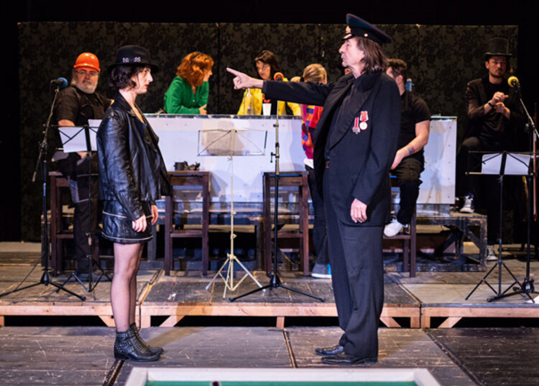 На сценї собі в пєсї Жобрацька опера заграть довєдна дванадцять членів драматічного колектіву, значіть ёго фундаментална часть. Переклад пєсы робив Валерій Купка. Жобрацька опера є у 77-ій сезонї театру за порядком ёго 390-ов премєров.