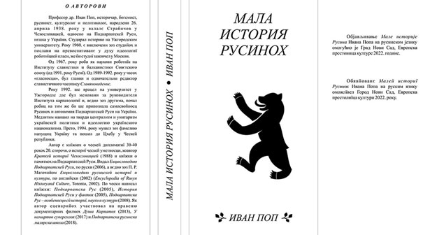 Обявйованє Малей историї Русинох проф. Ивана Попа на руским язику оможлївел Город Нови Сад, Европска престолнїца култури 2022. року.