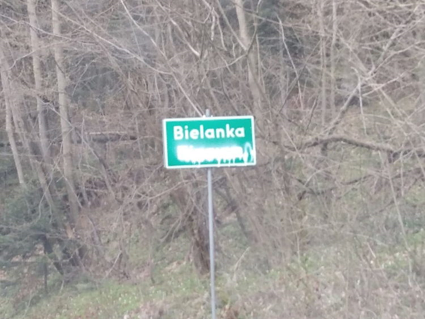 Заміщена знимка вказує таблицю з назвом села од страны Шымбарку. Таблиця была замазана правдоподібно шпрейом з обох стран. Справці замалювали лем лемківскоязычну назву «Білянка», а польска част «Bielanka» є нерушена. Нашы інформаторы донесли, што щестливо таблиці з інчых стран Білянкы сут впроядку, значыт од Лоси, і од Ліщын таблиці не были знищены.