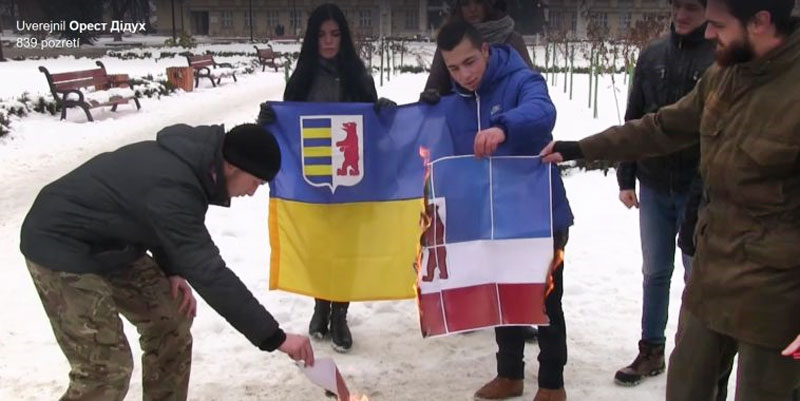 23. 1. 2017: Україньскы націоналісты спалили русиньскый флаґ