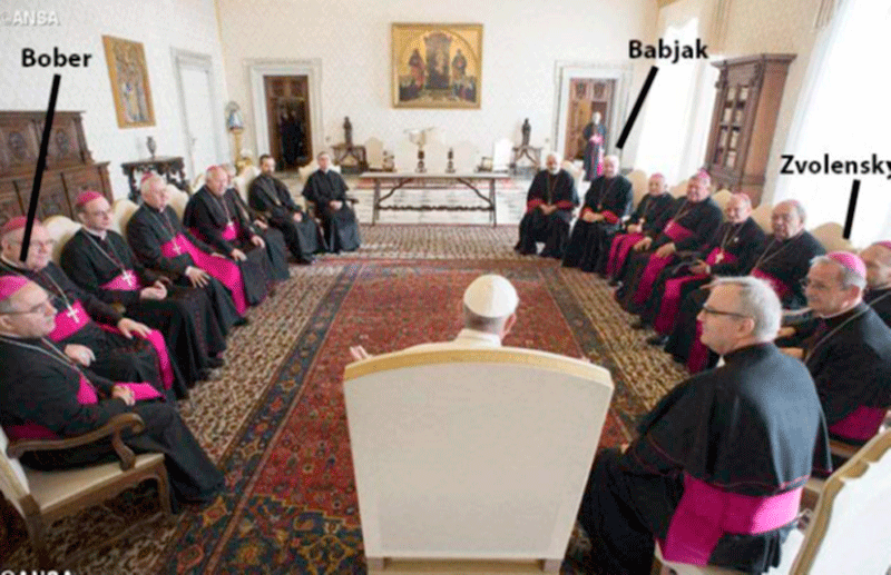 Ak by katolícka cirkev naozaj žila podľa ustanovení II. Vatikánskeho koncilu (Orientalium Ecclesiarum, 3), na oficiálnej fotografii by hneď vedľa rímskeho pápeža Františka sedeli podľa hodnosti traja arcibiskupi-metropoliti (na jednej strane dvaja rímskokatolícki: Stanislav Zvolenský, Bernard Bober a na druhej strane gréckokatolícky: Ján Babjak) a potom ostatní biskupi rímskokatolícki a gréckokatolícki.