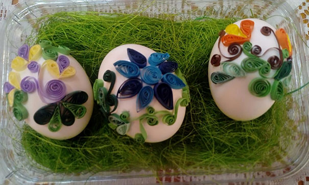 Сладяна Торма з Коцура на лупи з випущеного вайца викрава и украшує вайца з технїку декупаж: – Любим ручни роботи, а на вайцу резбарим и малюєм вельконоцни мотиви з акрил-технїку. Випражнїм вайцо, поумивам, осушим и офарбим го, а вец нарисуєм мотив и з прецизним фуровчком цагам линиї, або вартам. Кед ше цага линиї достава ше мотив у фарби вайца, а воно ма фарбу до хторей зме го пред тим офарбели – гутори Сладяна и додава же на концу вайцо прелакує.