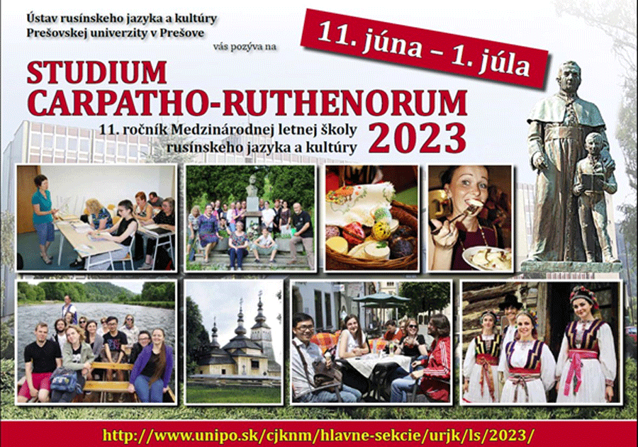 Літом одбуде ся дальшый, 11. уж річник Медженародной Літньой Школы Русиньского Языка і Культуры Studium Carpatho-Ruthenorum 2023. Інформує о тым Інститут Русиньского Языка і Культуры Пряшівского Університету, якій єст орґанізатором подіі.