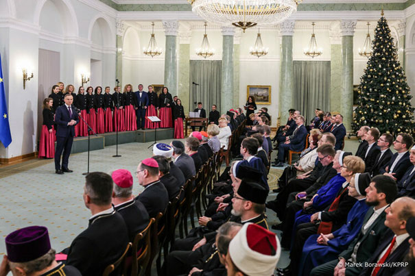 Стріча в президентскым палаци є уж традицийом – каждого рока на запрошыня президента представникы віржных віроісповідань, а тіж нацийональных і етнічных меншын сут прошены до участи в спільній подіі. Президент Дуда в своій промові дякувал за толеранцию і спілодповідальніст. Навязал до войны на Украіні – коли то польскы громадяне неєднократно принимали до своіх хыж украіньскых біженців, даючы тым самым доказ на братерску любов, не звідуючы, кым є друга особа і одкале приходит.