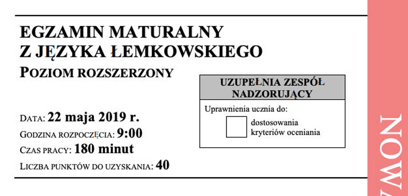 Вшыткым здаючым ґратулуєме успіху. Аркуш тогорічной матуры доступный до перезніня за на сайті Центральной Еґзамінацийной Комісиі.
