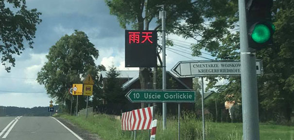 Мусіло то певно дакус коштувати. Та де бы ніт, коли такій крас екран має. Підредакция пішла і виділа. Таблиця, котру повісили при ґладышівскым пути (од Ждыні ґу Маґурі), пляново має подавати шоферам основны з іх точкы пізріня комунікацийны комунікаты. Добрі бы было, жебы хоцкі написы были по лемківскы. Най бы вкінци приіздны ближе нас познали. Но, але є уж доцяп еґзотично. Є по кытайскы і нихто не знат чом. Жебы то іщы было так легко як з русиньскым, де мы – люде од Ґладышова, маме свій лемківскій стандард. Тот кытайскій напис є гейбы в юе. То уж чысто высока філолоґія.