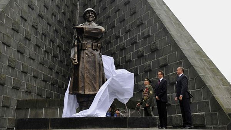 Копія скулптуры Яна Адолфа Вітека, котру святочно одгалив теперїшнїй презідент СР Андрей Кіска (першый справа).