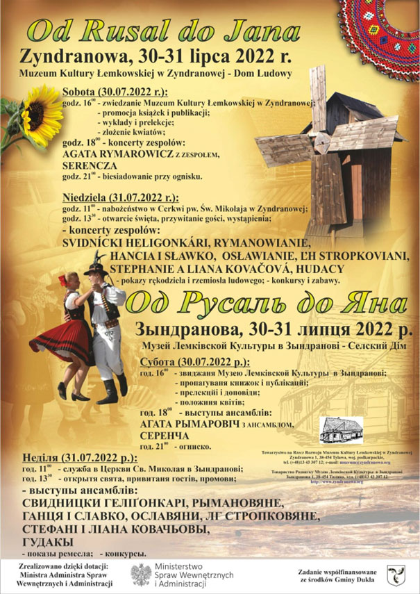 Першый річник «Од Русаль до Яна» был зорґанізуваный в 1992 р. Уж в найблизшый вікенд Музей Лемківской Культуры в Зындрановій буде місцьом одбываня ся подіі «Од Русаль до Яна».