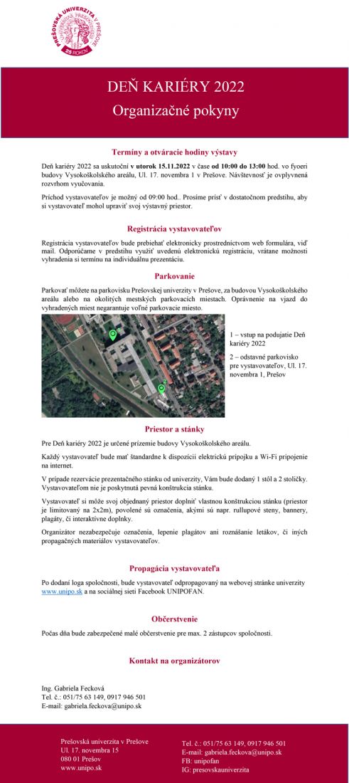 v mene Prešovskej univerzity v Prešove, by sme Vás veľmi radi pozvali a privítali na pripravovanom veľtrhu "Deň kariéry 2022", ktorý sa uskutoční 15.11.2022, od 10:00 - 13:00 hod. vo foyeri budovy VŠA, Ul. 17. novembra 1 , Prešov.