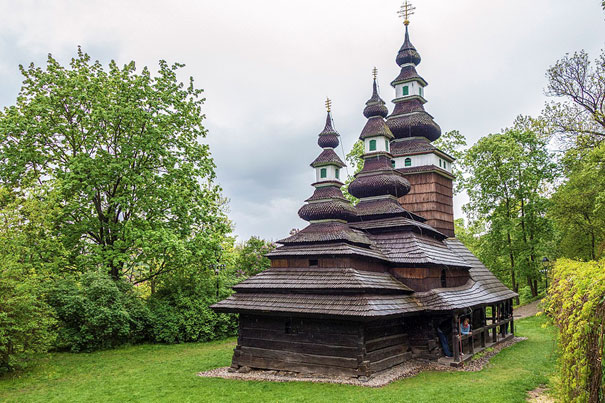 Церьков святого Михаіла Архістратига быв памятково хороненый обєкт із 17-го столїтя. Храм із села Великы Лучкы на Підкарпатьскій Руси перенесли до Прагы в роцї 1929, почас 1-ой Чехословацькой републікы, жебы став частёв збірок Народописного музея. Будова зо шындлёвов стрїхов мала три турнї.