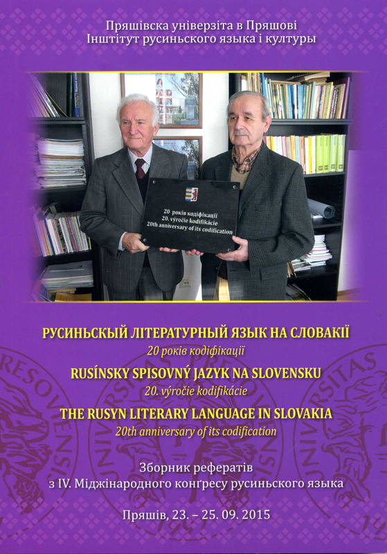 Якраз тот факт став ся релевантным при орґанізованю IV. Міджінародного конґресу русиньского языка (23. – 25. 9. 2015), якый быв присвяченый 20-річному юбілею кодіфікації русиньского языка на Словакії, выступным документом котрого є даный зборник. Конґрес мав штири тематічны секції: І. Статус русиньского языка в шыршім лінґвістічнім контекстї, ІІ. Актуалны лінґвістічны проблемы русиньского языка в окремых країнах, ІІІ. Русиньскый язык в окремых функціоналных сферах і ІV. Русиньскый язык в школьскій сістемі Словакії і в загранічу. Якраз четверта тематічна секція, котра проходила формов модерованой діскузії і котрой участниками были учітелї русиньского языка з розлічных держав на єднім боцї, і представителї штатных орґанів, котры забезпечують імплементацію Европской харты реґіоналных або меншыновых языків в єднотливых країнах Европской унії на другім боцї (нажаль, з позваных представителїв єднотливых держав, в котрых жыють Русины – Польща, Мадярьско, Україна, Румунія, Сербія і Хорватія, пришли лем дві представителькы за Словацьку републіку – із Штатного педаґоґічного уставу в Братїславі). На конґрес были позваны таксамо представителї Европского парламенту (оправдали ся з неучасти, але вышли з ініціатівов на діскузію о настоленых проблемах Русинів прямо у Бруселї), котры „дозерають“ на то, як сіґнатарьскы державы Харты дотримують, респ. не повнять свої обовязкы. І така участь – неучасть компетентных мать свою выповідну цїну. На кінцю четвертой тематічной секції єй участници формуловали єднотливы пункты до Заключіня з IV. Міджінародного конґресу русиньского языка, котре публікуєме вєдно з прочітаныма на конґресї научныма рефератами.