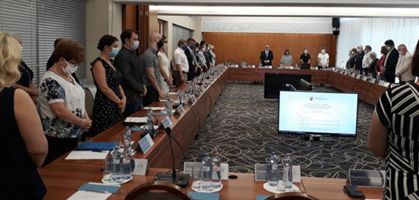 Засїданя членове выбору зачали минутов тиха, котров оддали честь Владимірови Долинаёви, довгодобому членови выбору, котрый траґічно вмер у суботу 25-го юла.