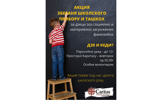 РУСКИ КЕРЕСТУР – Акция збераня школского прибору и ташкох за дзеци зоз социялно и материялно загрожених фамелийох, котру порушал парохийни каритас св. о. Миколая при катедралней церкви, будзе тирвац цали школски рок.