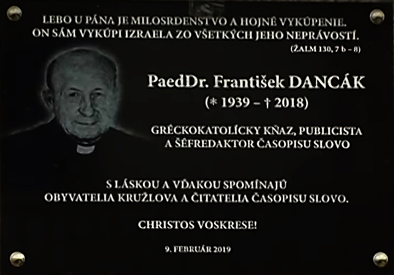 5. 3. 2019: В Кружлёві одкрыли памятну таблу о. Франтїшкови Данцакови