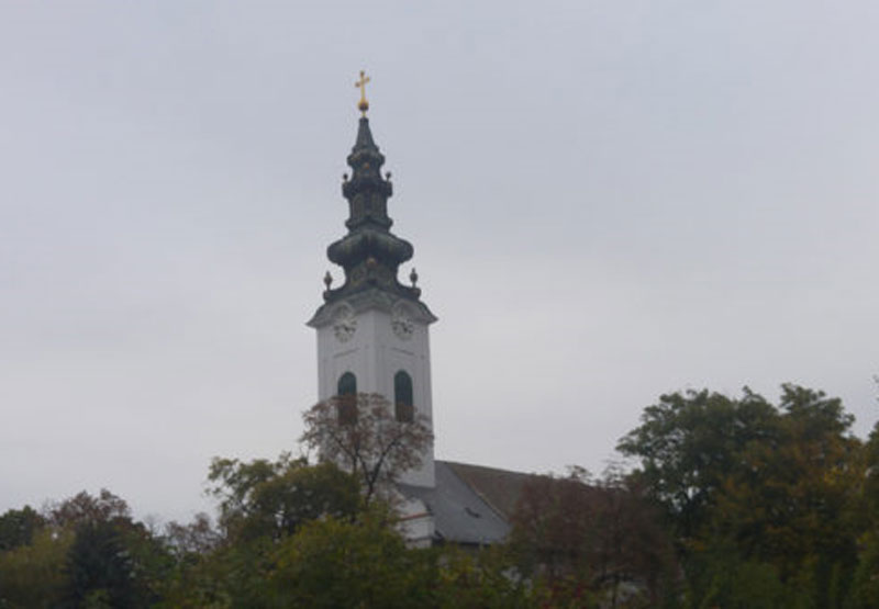 Погляд на вежу Катедралного ґрекокатолицького собору св. Николая в Руськім Керестурї на Войводинї (Сербія).