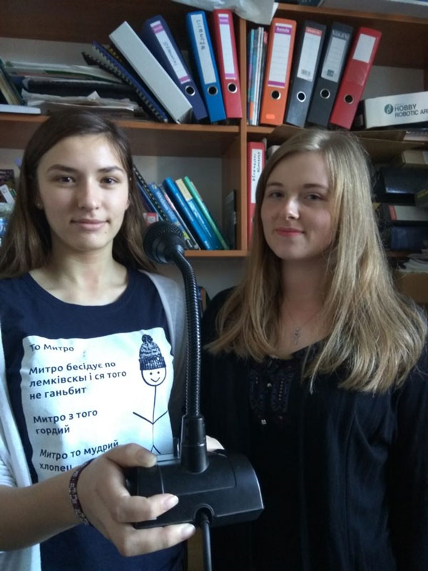Вводне слово, котре односило ся до лемківской етнічной меншыны, выголосил Ян Дрождж, директор школы, а пак специяльний проґрам через шкільну радийолю вели Наталия Купец та Ірена Вірхняньска (позн ред: АРК в СР: на фотцї). Попри головній темі, яком была дата 100. річниці фльориньского віче, дівчата представили тіж основны інформациі тыкаючы Лемків.