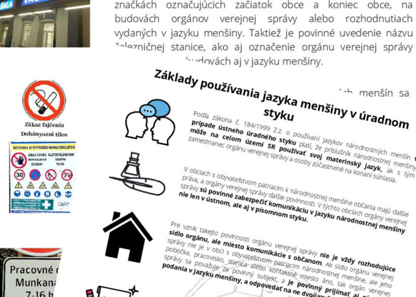 Уповномоченый влады Словацькой републікы про народностны меншыны Ласло Буковскый приготовив із своїм тімом інформачны матеріалы, котры познакомлюють о повинностях самосправ при публікованю інформацій в языку народностной меншыны.