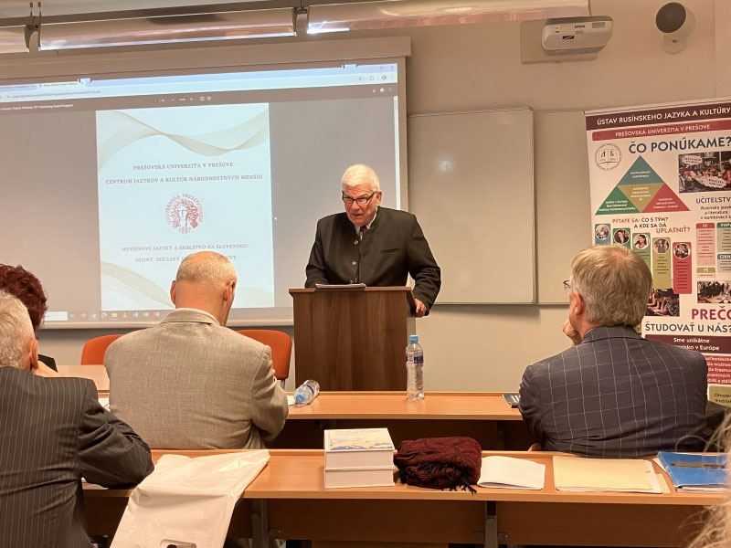 • У пленарній секіції меджінародной конференції выступив і Др. г. к. Пряшівской універзіты, проф. Др. Павел Роберт Маґочій із Торонтьской універзіты в Канадї на тему Язык і народна ідентічность.